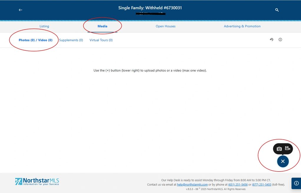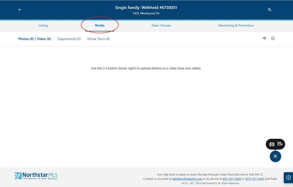 Step Four: Select what you'd like to upload: Photos/videos, Supplements, or Virtual Tours, then click the Plus sign in the lower right corner.